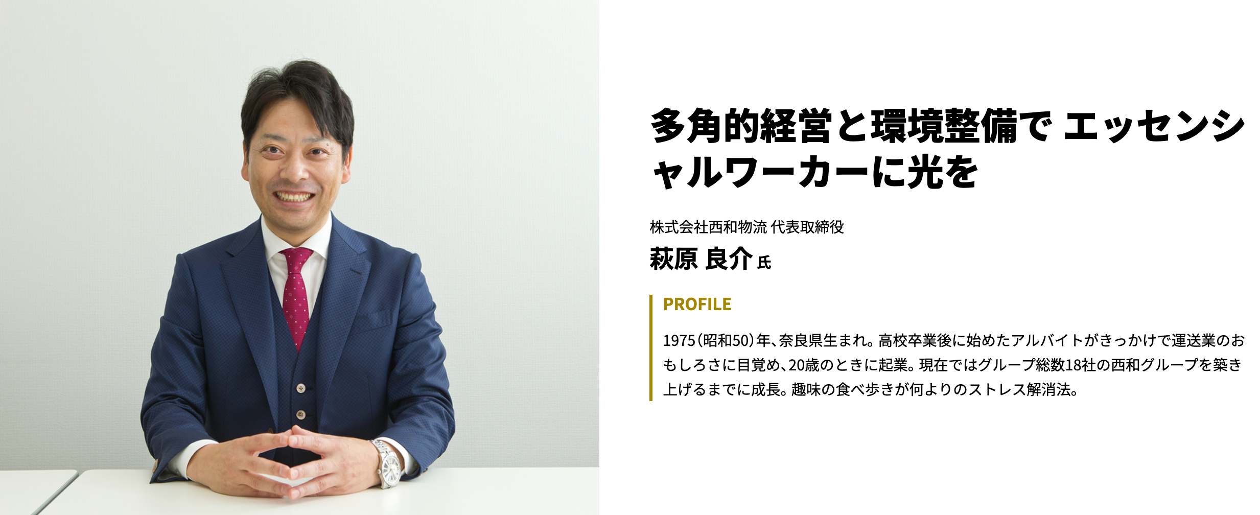 西和物流は「多角的経営と環境整備でエッセンシャルワーカーに光を」というテーマで取り上げられています。
