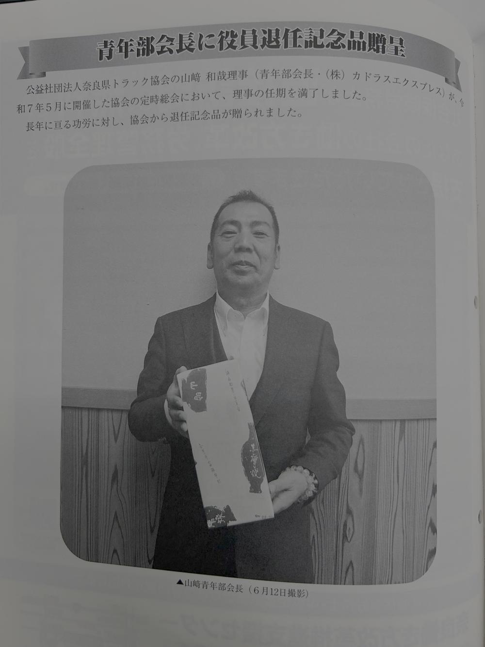 令和7年7月10日、カドラスエクスプレス 山﨑会長が、奈良県トラック協会青年部会の会長職を勇退されました。